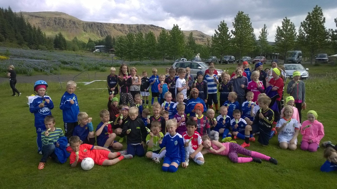 Eftir spilið fengu allir krakkarnir ís…….að sjálfsögðu frá Kjörís :).