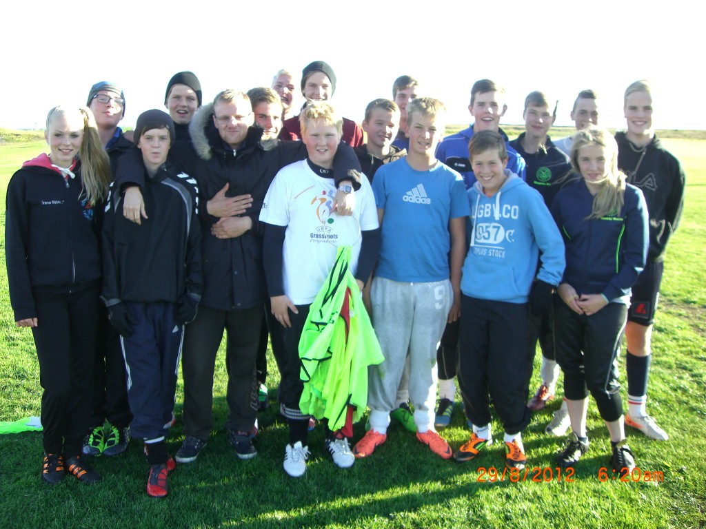 Lárus var með síðustu æfingu sína með 4. og 3. flokk í dag og stillti sér upp með hópnum.