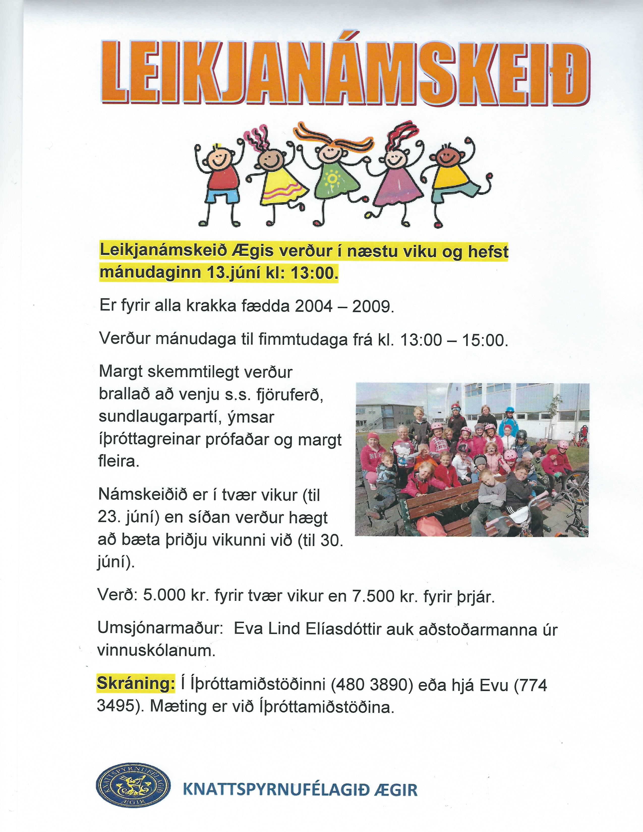 Leikjanámskeiðið byrjar næsta mánudag 13.júní,,,, látið berast 🙂