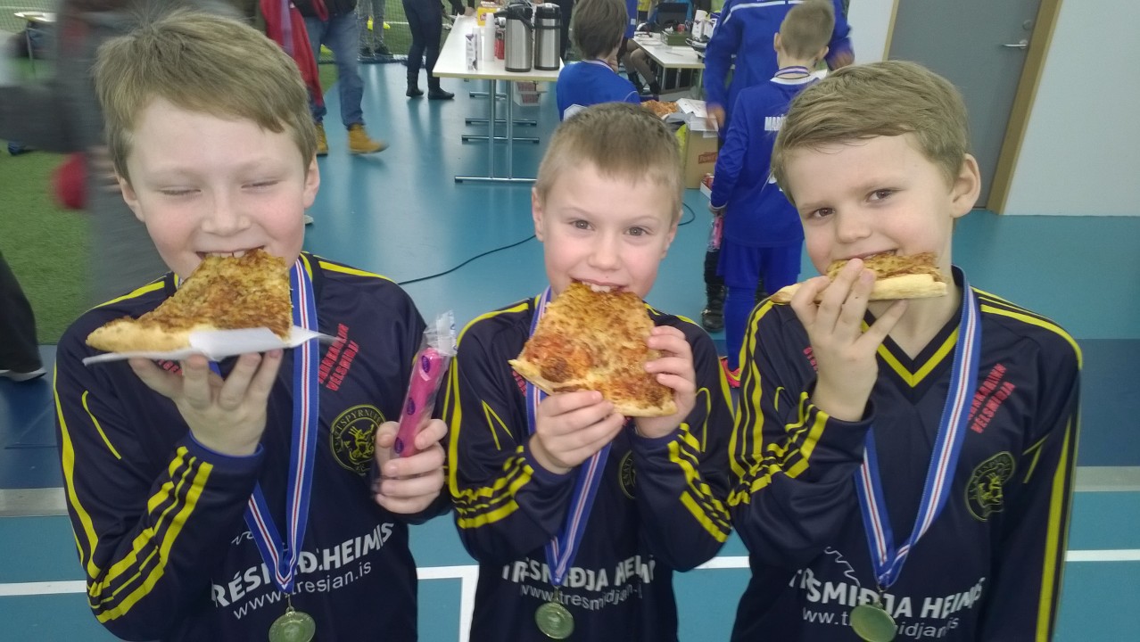 Eftir mótið fengu svo allir keppendur pizzu, ís og verðlaun.